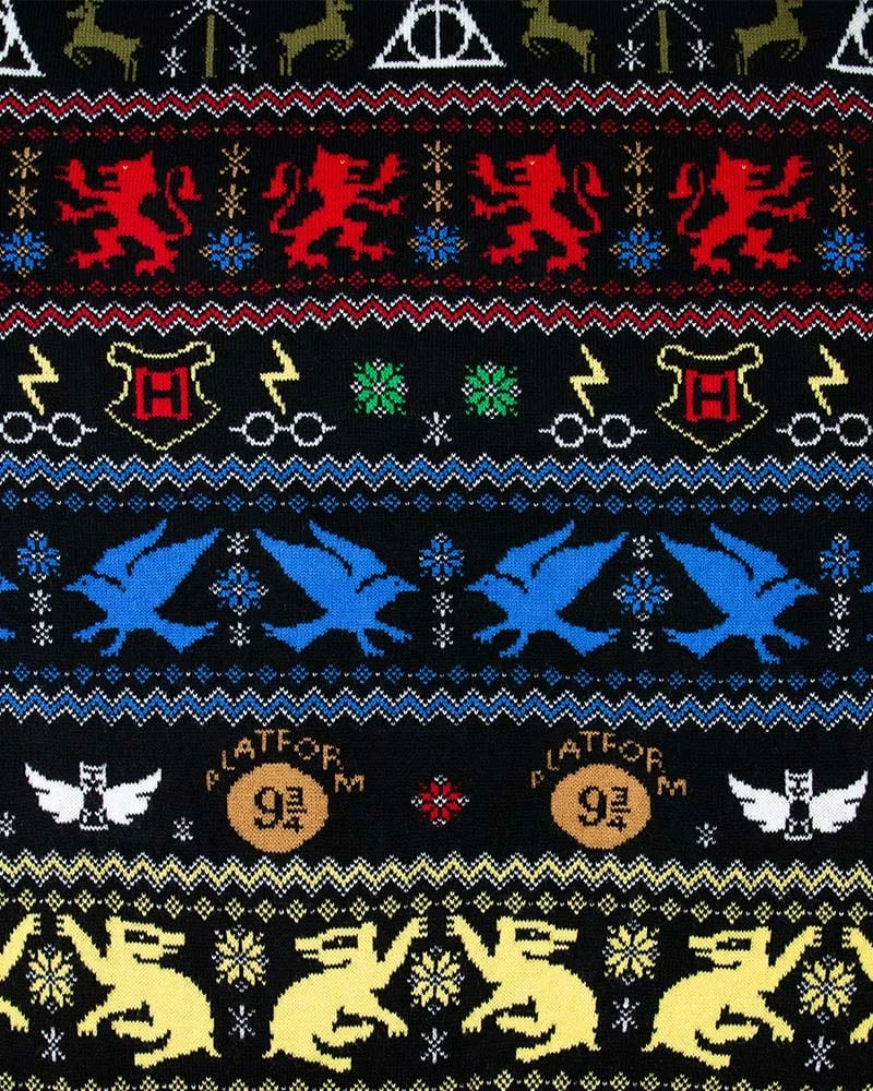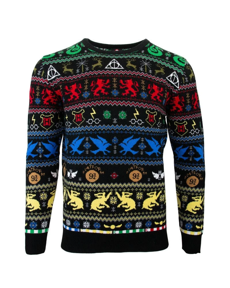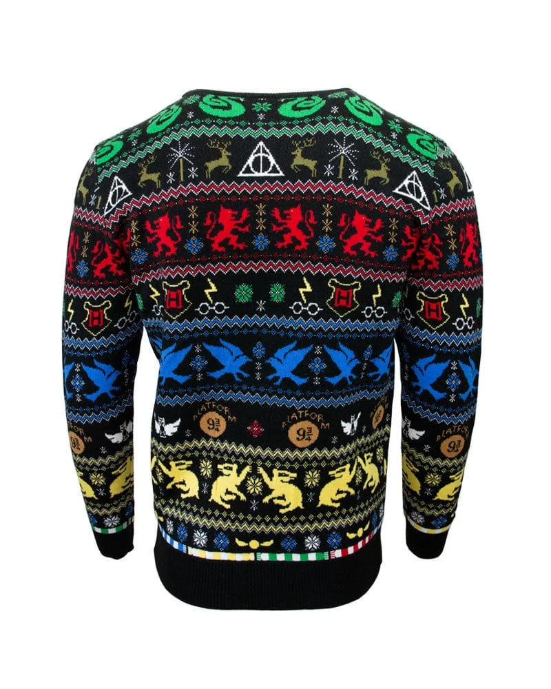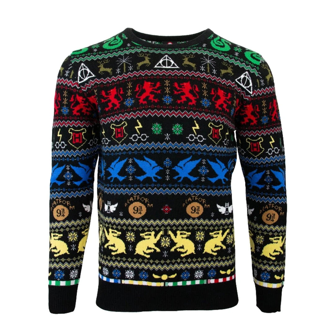 Add a little magic to your Christmas by sporting this 100% knitted Harry Potter themed winter garment. From Slytherin with their cunning ambition and pride to Gryffindor with their bravery and determination, this high-quality jumper features all four Hogwarts house emblems as well as a bunch of iconic Harry Potter references! This is a must-have item for any Harry Potter enthusiast looking to spruce up their wardrobe for the holiday season.