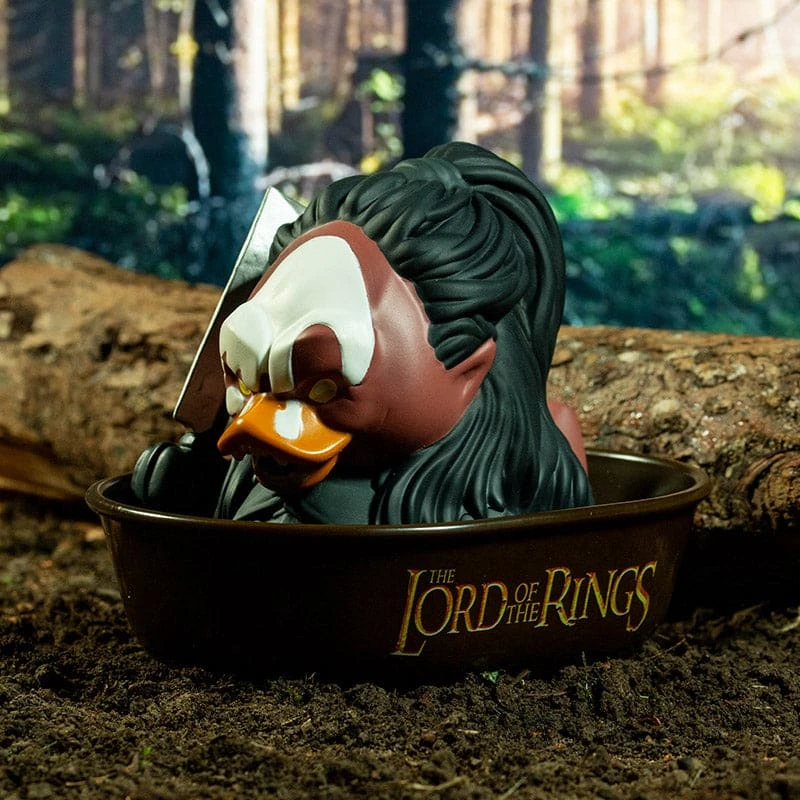 The first leader of the Uruk-hai and Saruman’s second-in-command, Lurtz has earned his reputation as one of the most vicious orcs to walk in Sauron’s forces. It’s a big mistake to underestimate him, even as a duck! Coming boxed in an awesome displayable ‘Lord of the Rings’ tub display stand, this one of a kind collectible is great for fans of the series to stock up on.