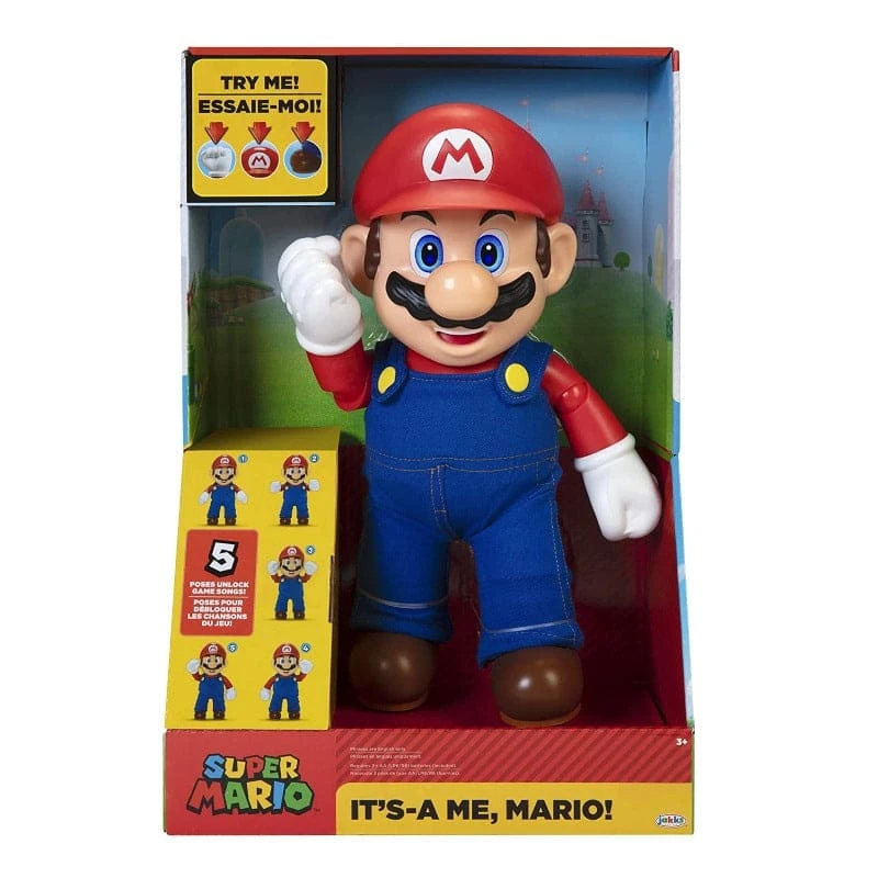 Let’s-a-go! Hop, jump and leap into play with this fantastic official Nintendo talking Super Mario figure! With plenty of phrases and songs to enjoy, this talking figure is the perfect way to bring the platforming plumber to life to play!
