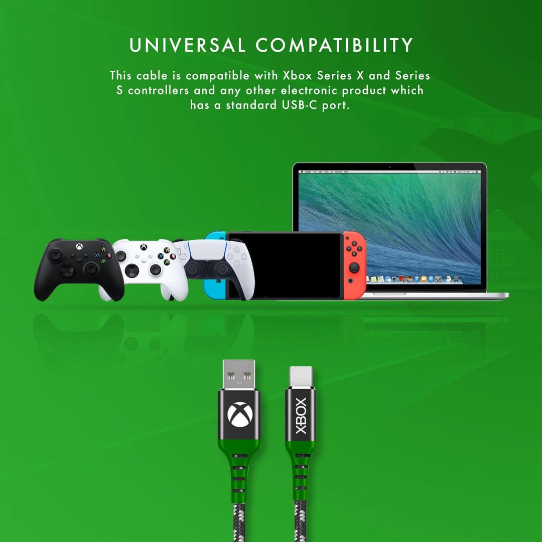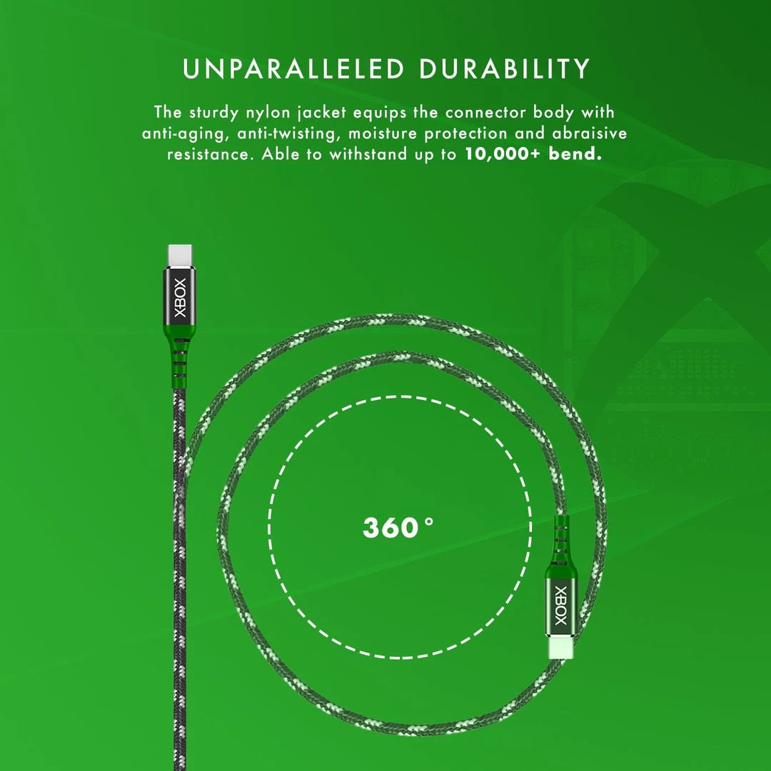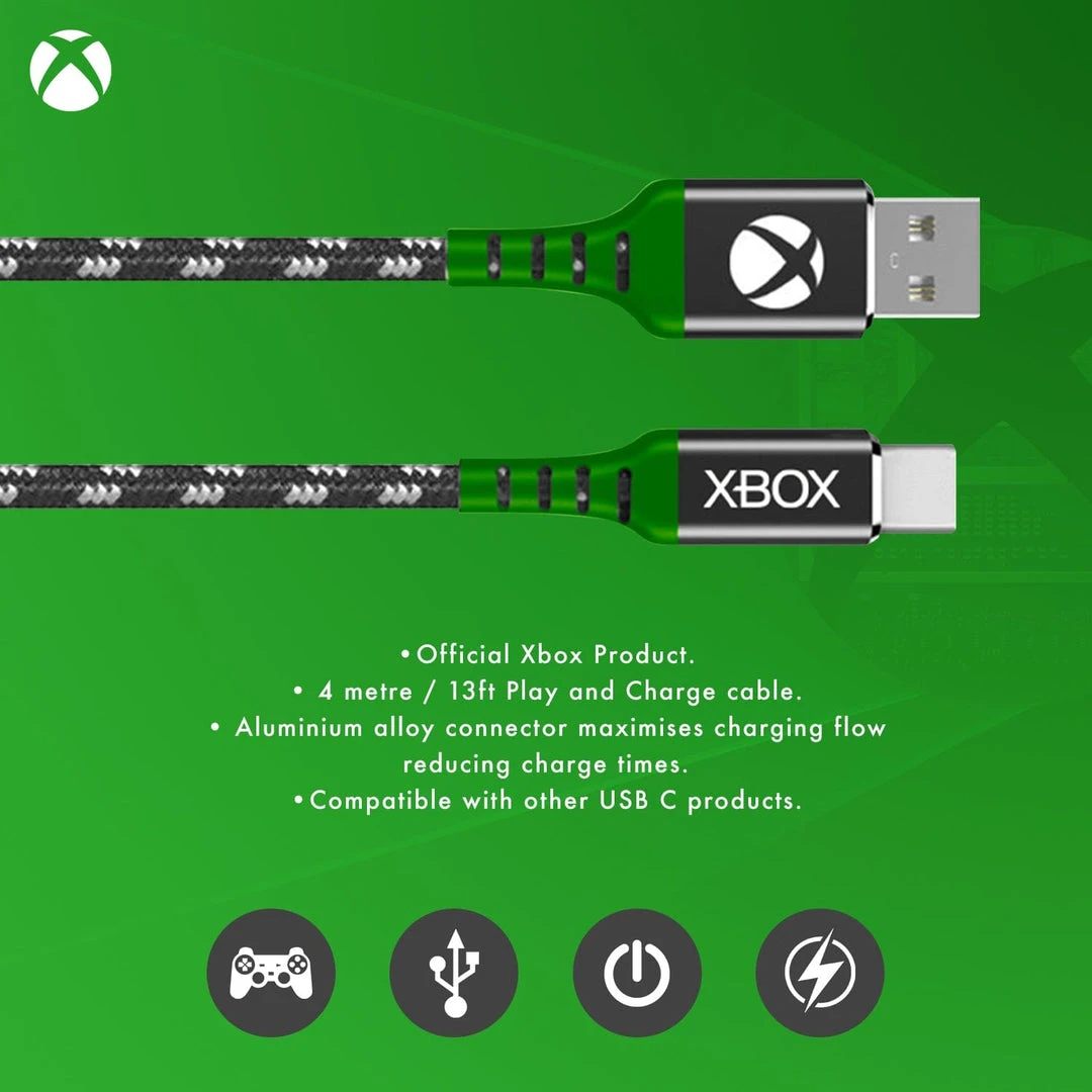 On the hunt for a pro-gamer ready charging cable to add to your arsenal of Xbox gaming accessories? Introducing the Xbox Series X range, featuring the premium quality USB C Cable that’s augmented to maximise your controller charging speed. This extra-long 4 metre (13 feet) cable has a durable nylon braided cable, ensuring a long lifespan and resistance to tangling issues.